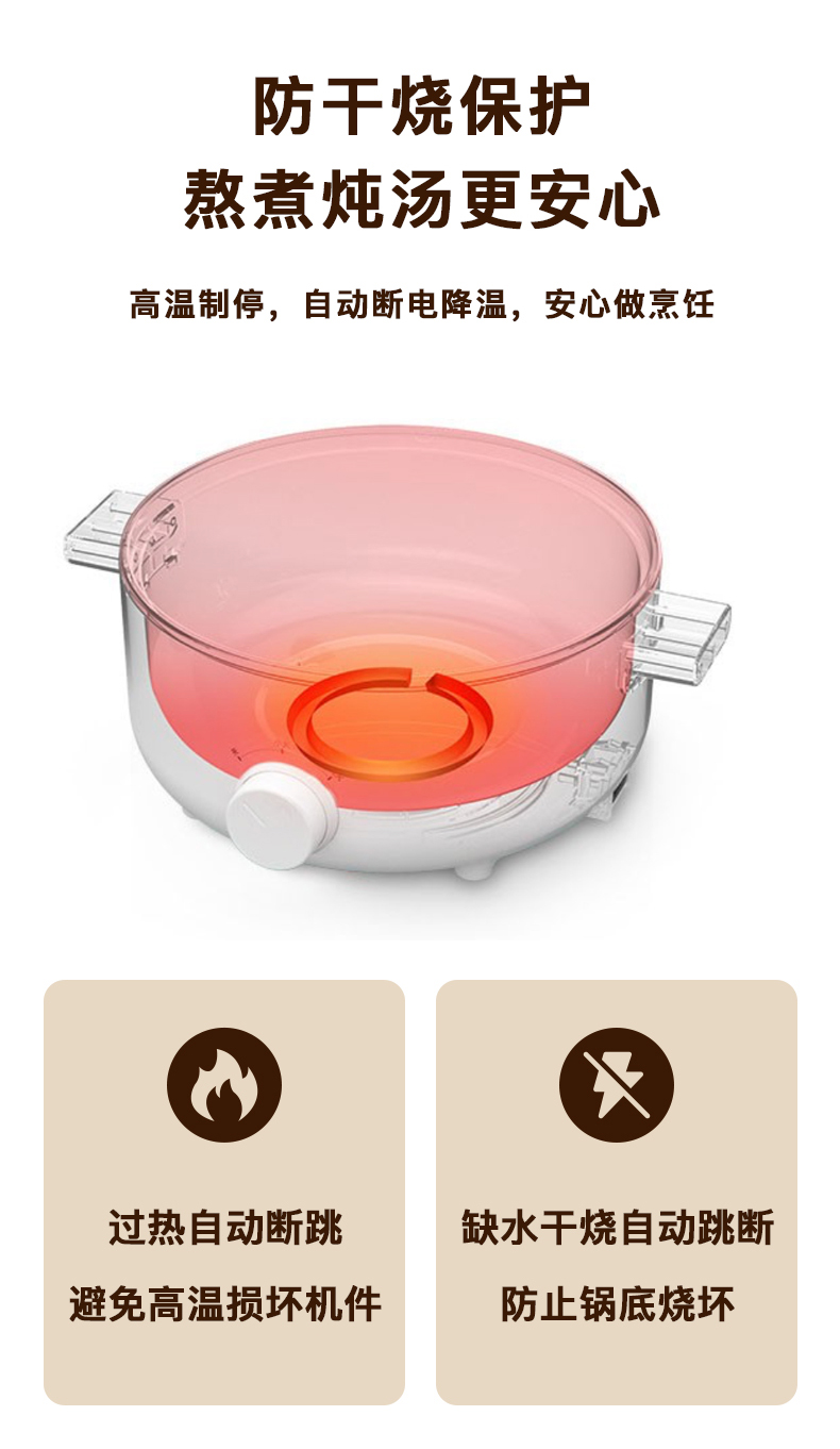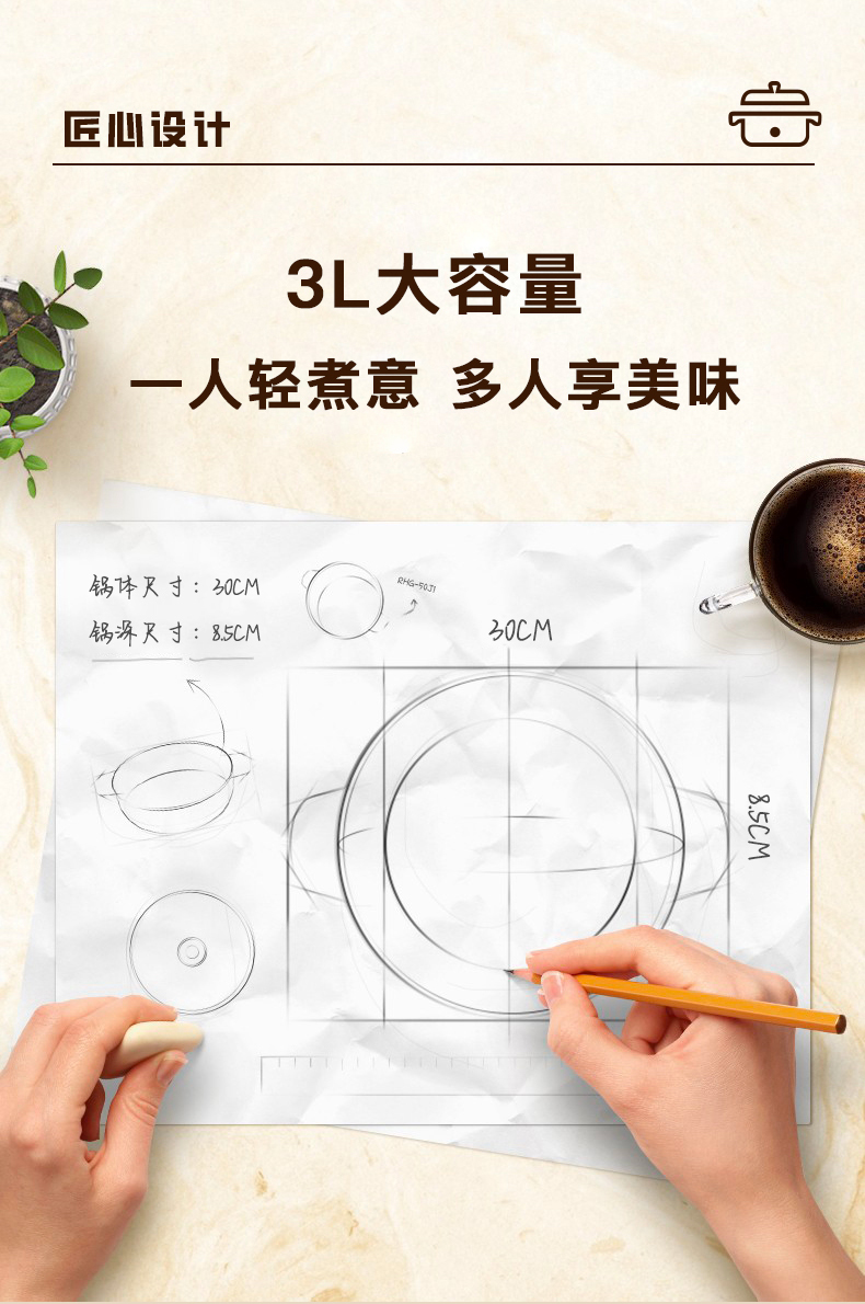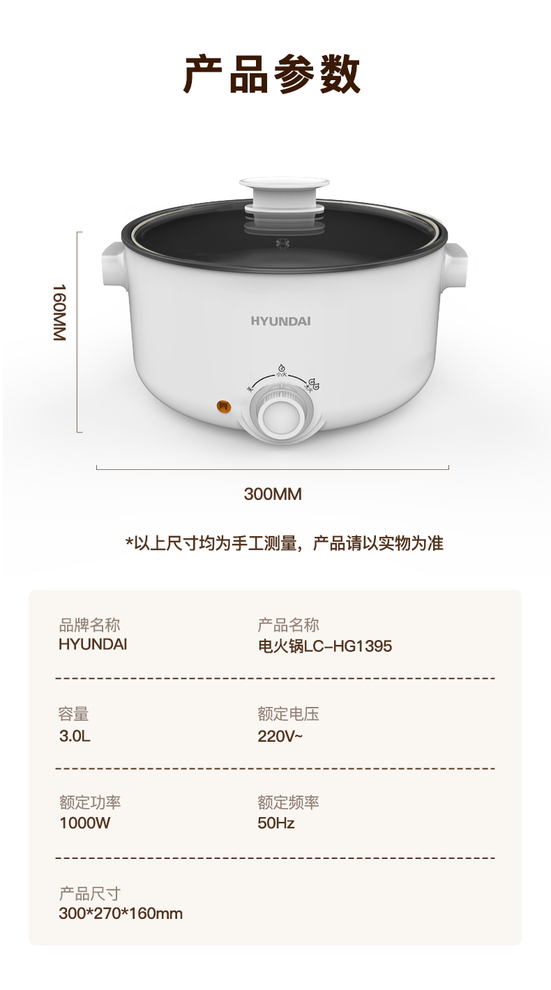 1、3L大容量深鍋,兩檔火力調控,輕松掌控火力; 2、可視化玻璃蓋,烹飪狀態隨時可見 3、不沾涂層,輕油少煙,易清洗 4、防干燒保護,高溫/干燒自動斷電; 5、隔熱大手柄,輕松拿起更安全 6、可拆卸電源線插孔,硅膠防滑腳墊。