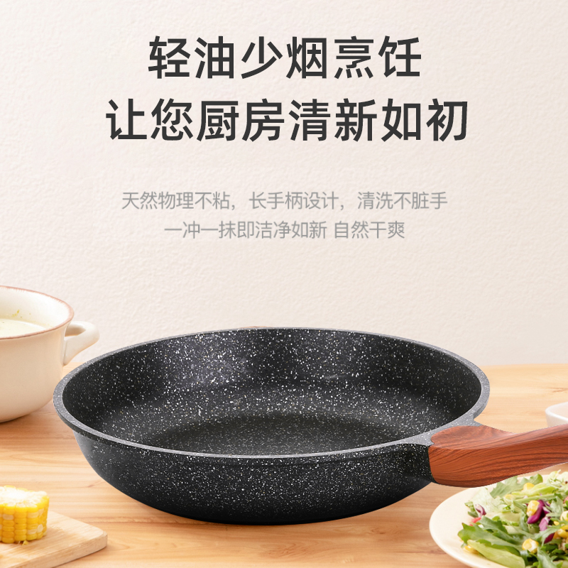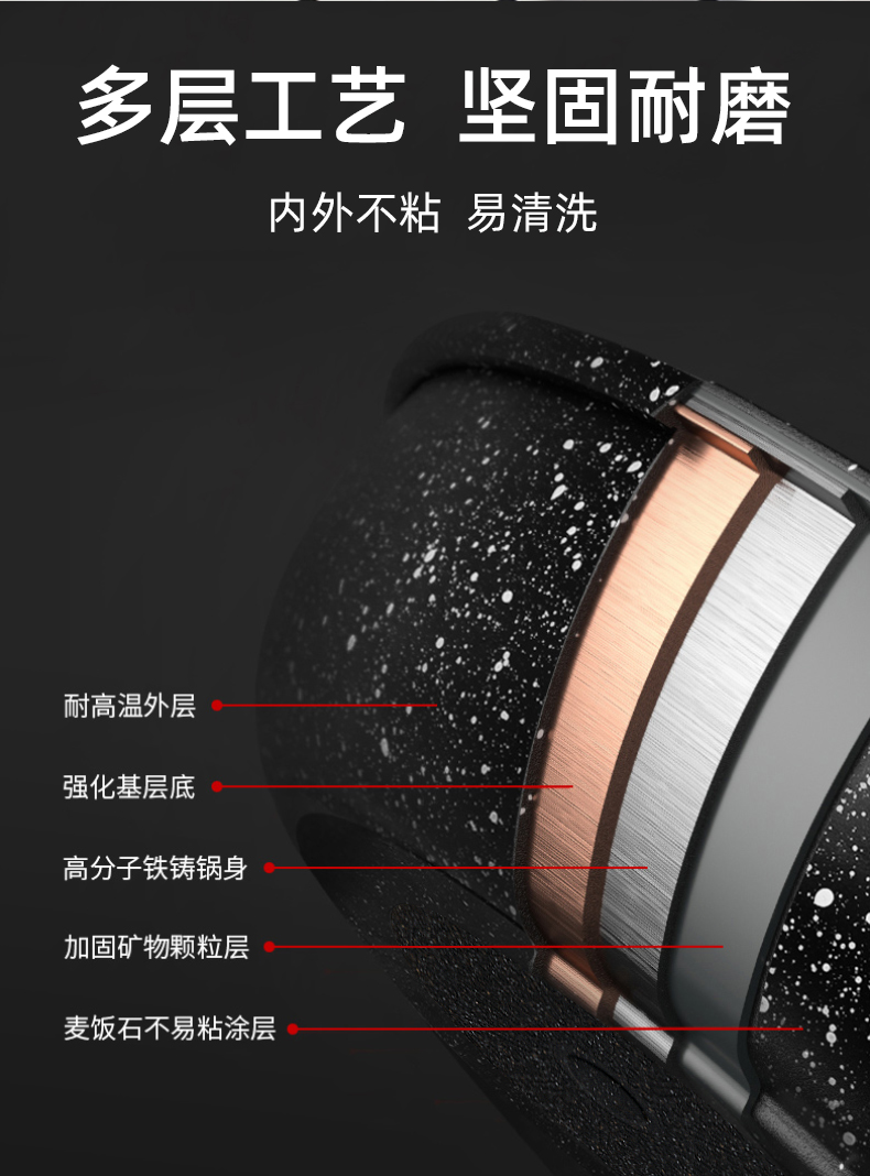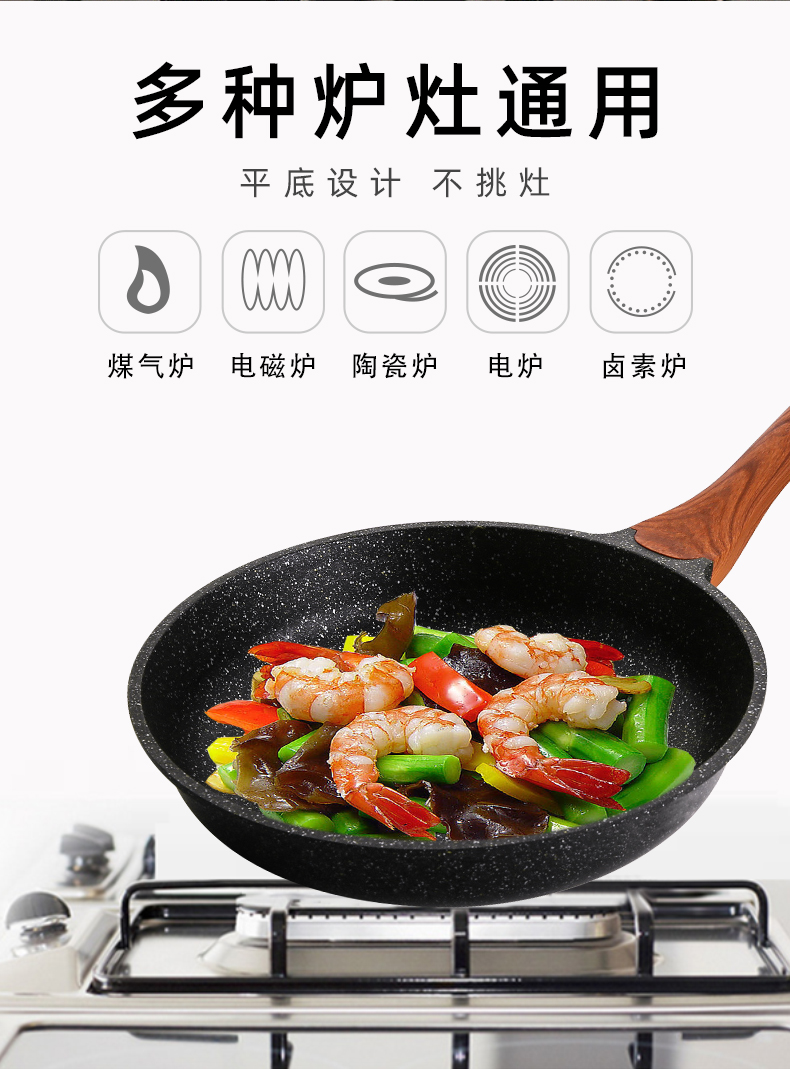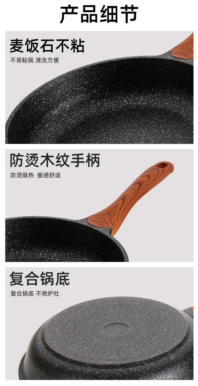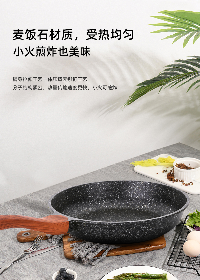 復(fù)合底快速導(dǎo)熱省氣省電,有質(zhì)感、健康材質(zhì),不粘煎鍋,好用易清洗