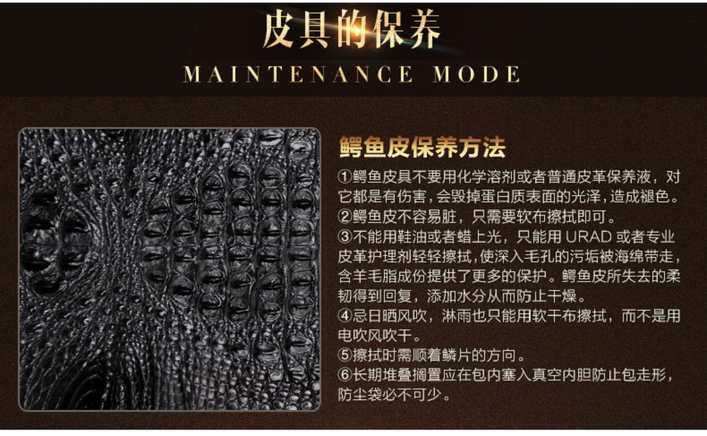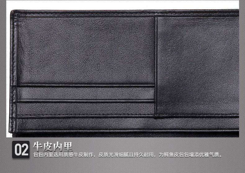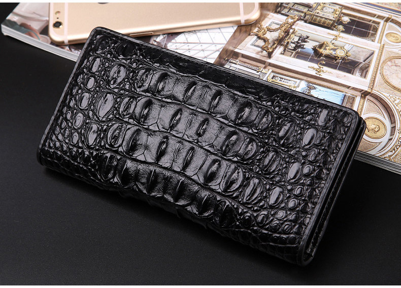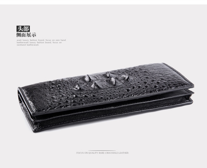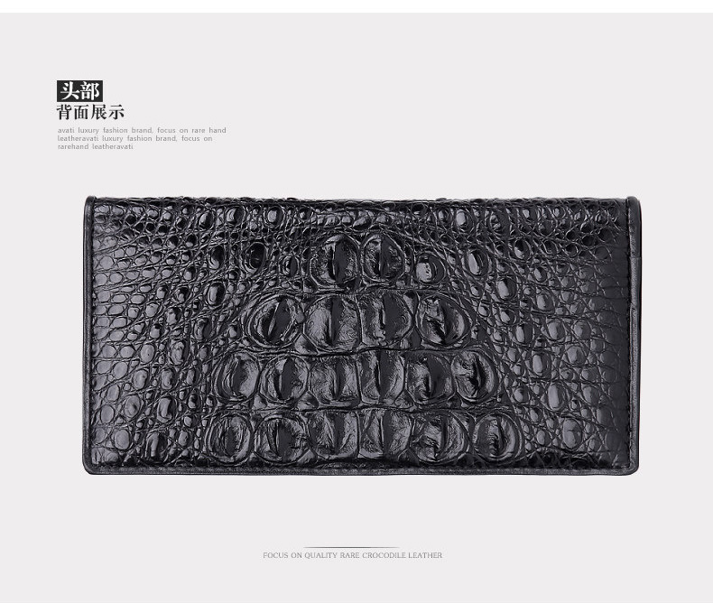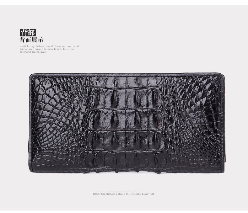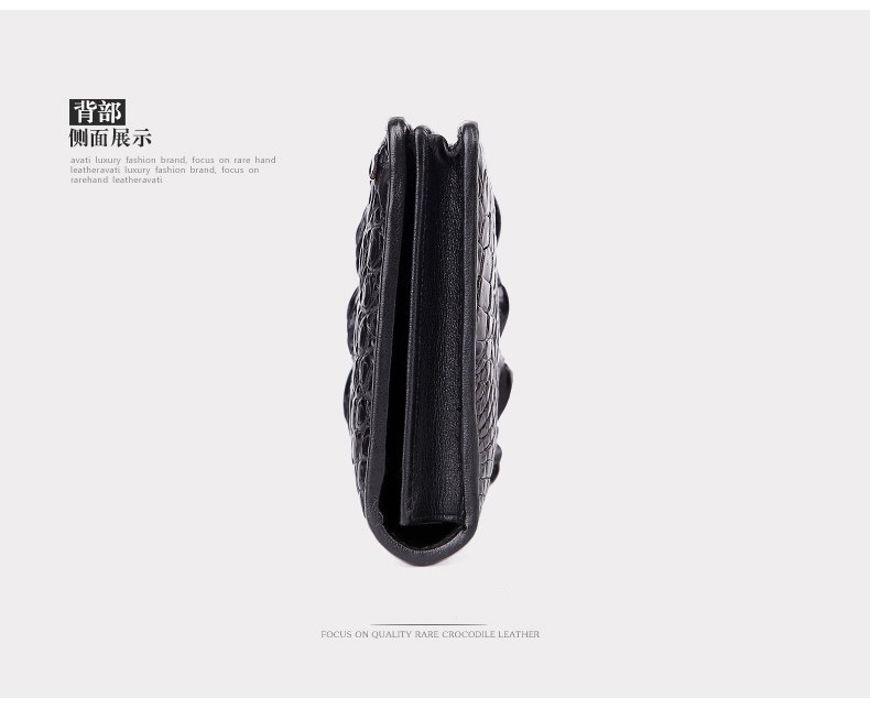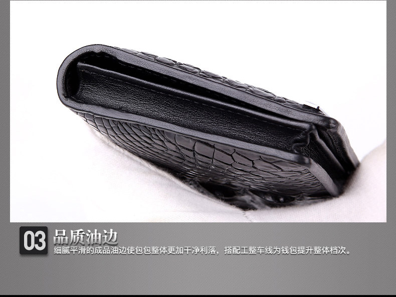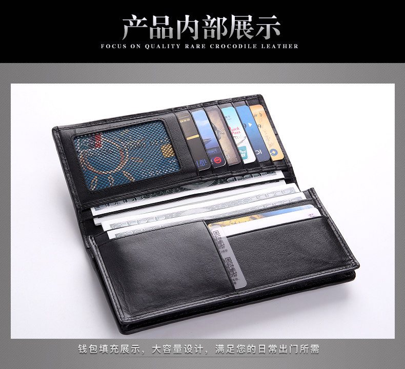 貨號:G066規格:17.8cm寬x9cm高x2.7cm厚面料:鱷魚皮內襯:牛皮用途:手拿容量:可放入大手機、香煙、鑰匙、紙巾、打火機結構:8個卡位、1個大鈔夾、1個拉鏈暗袋、3個票據位、1個相片位溫馨提示:尺寸均為手工測量,若有誤差,敬請諒解,一切以實物為準貨號.