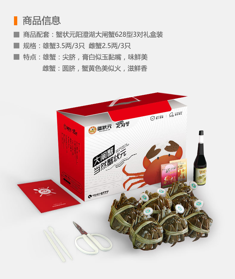 商品套餐:雄蟹3.5兩/3只 雌蟹2.5兩/3只