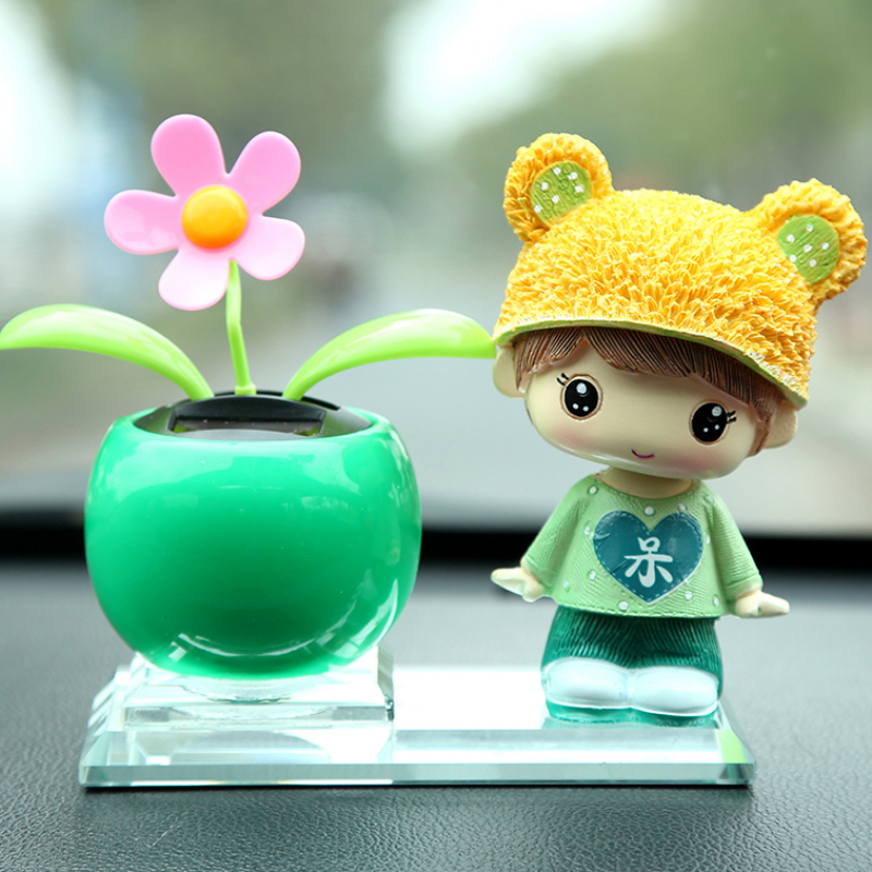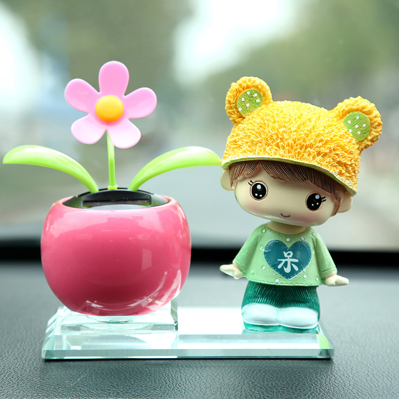 新款汽車(chē)擺件創(chuàng)意太陽(yáng)花可愛(ài)卡通娃娃樹(shù)脂搖頭
