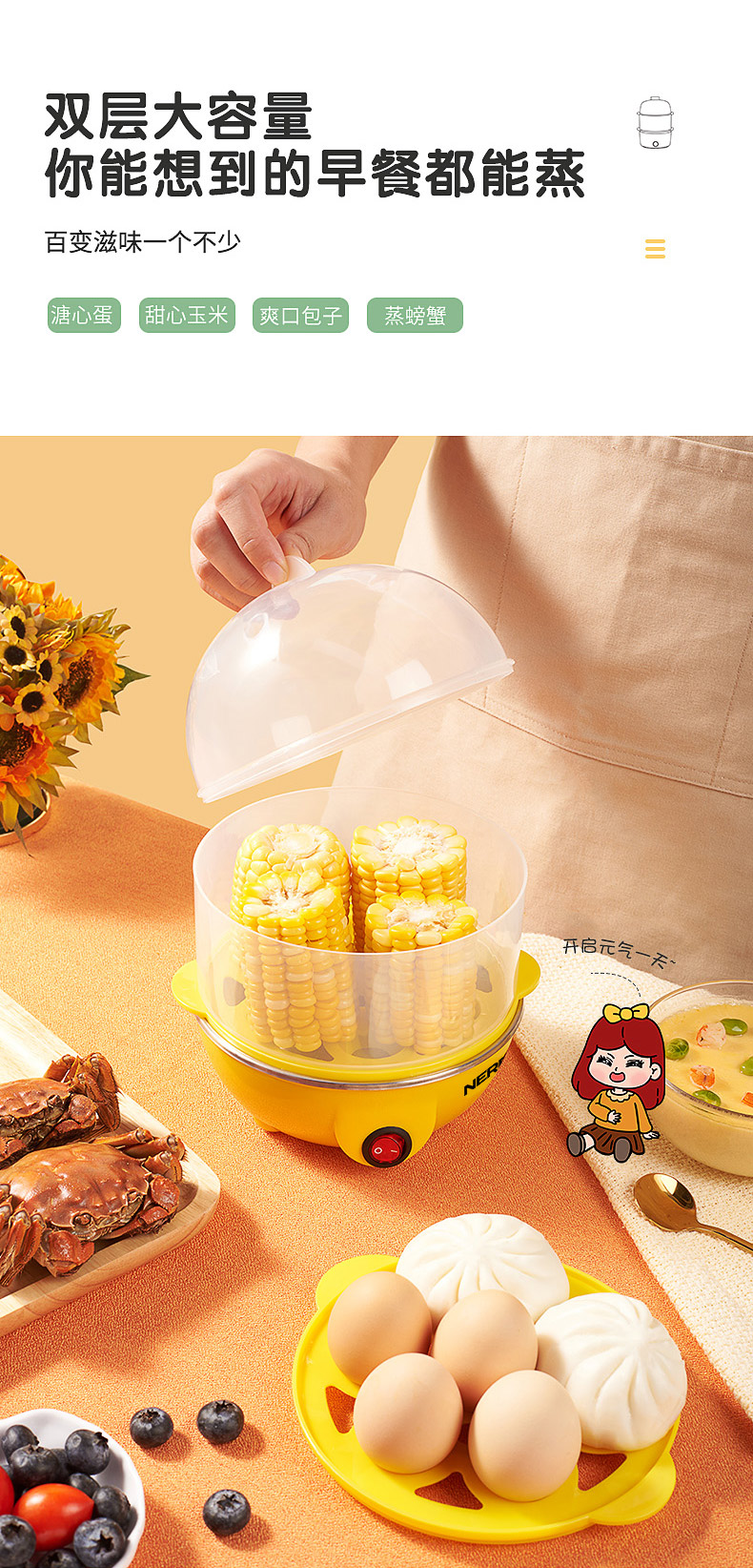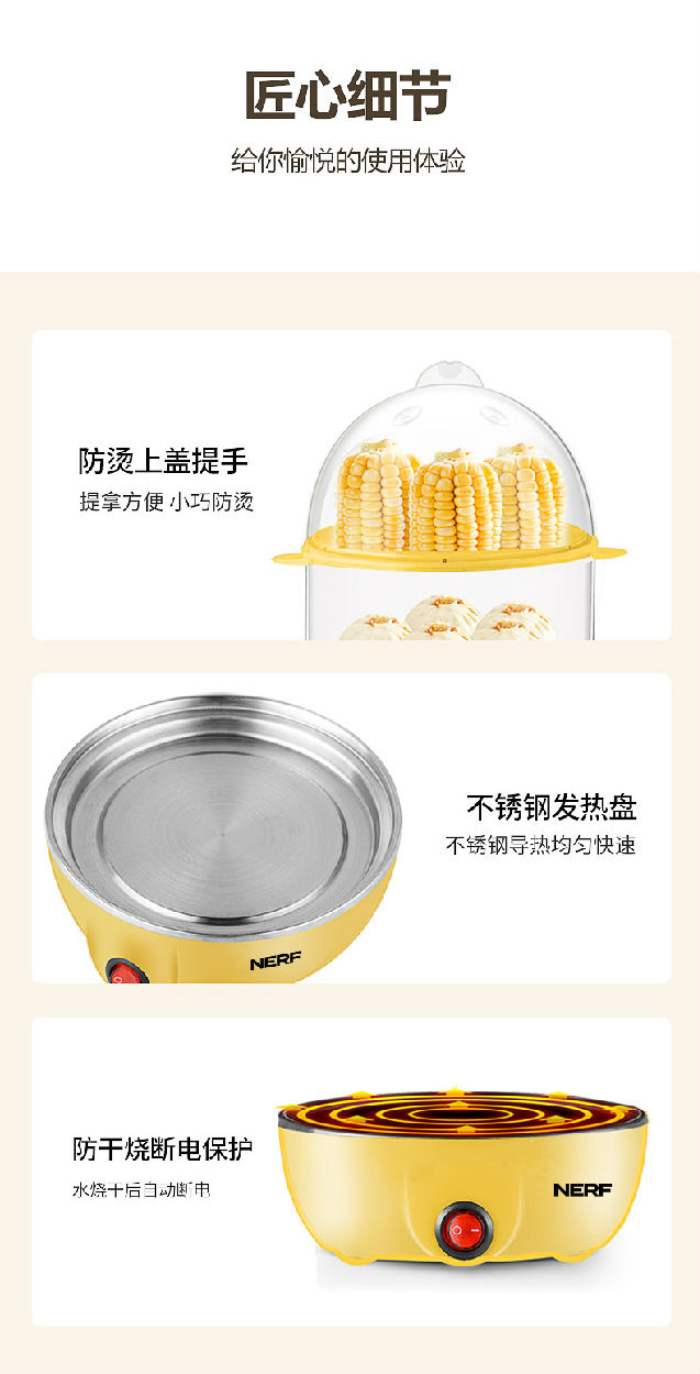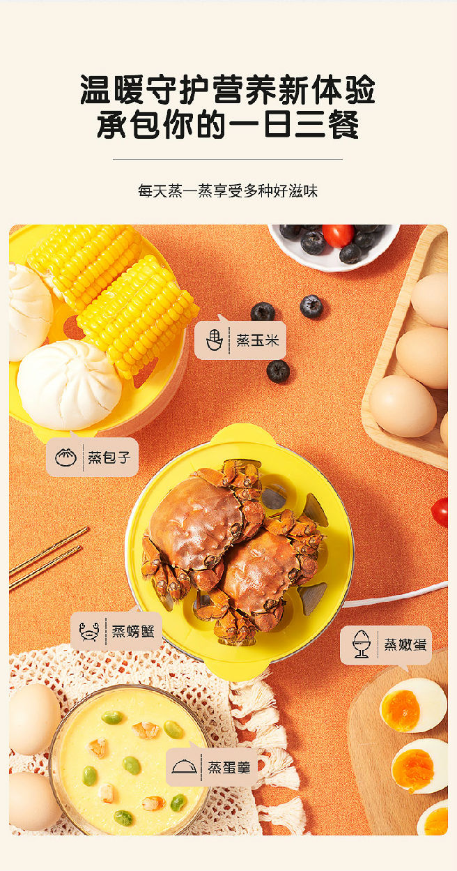 雙層大容量,蒸煮同步,防干燒保護(hù)