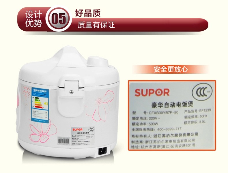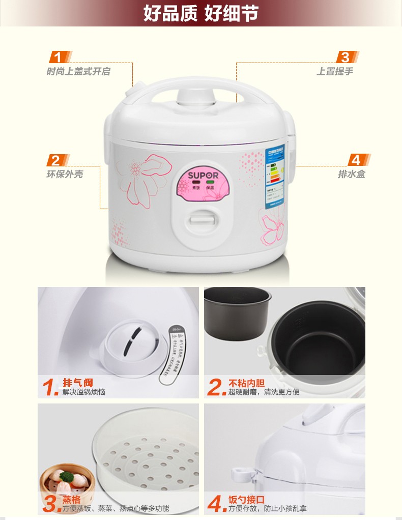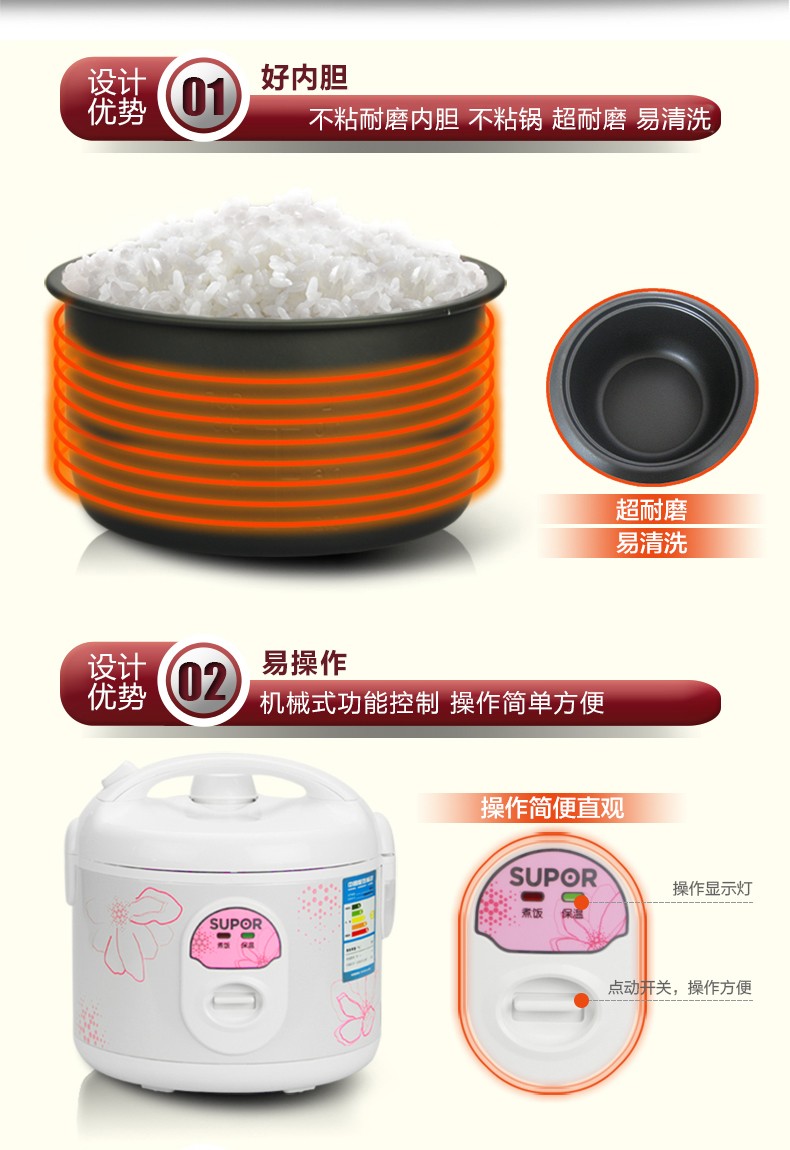 蘇泊爾(SUPOR)3L/4L/5L家用電飯煲 電飯鍋學生電飯鍋 學生老人簡單一鍵操作 50YB7F(5升)