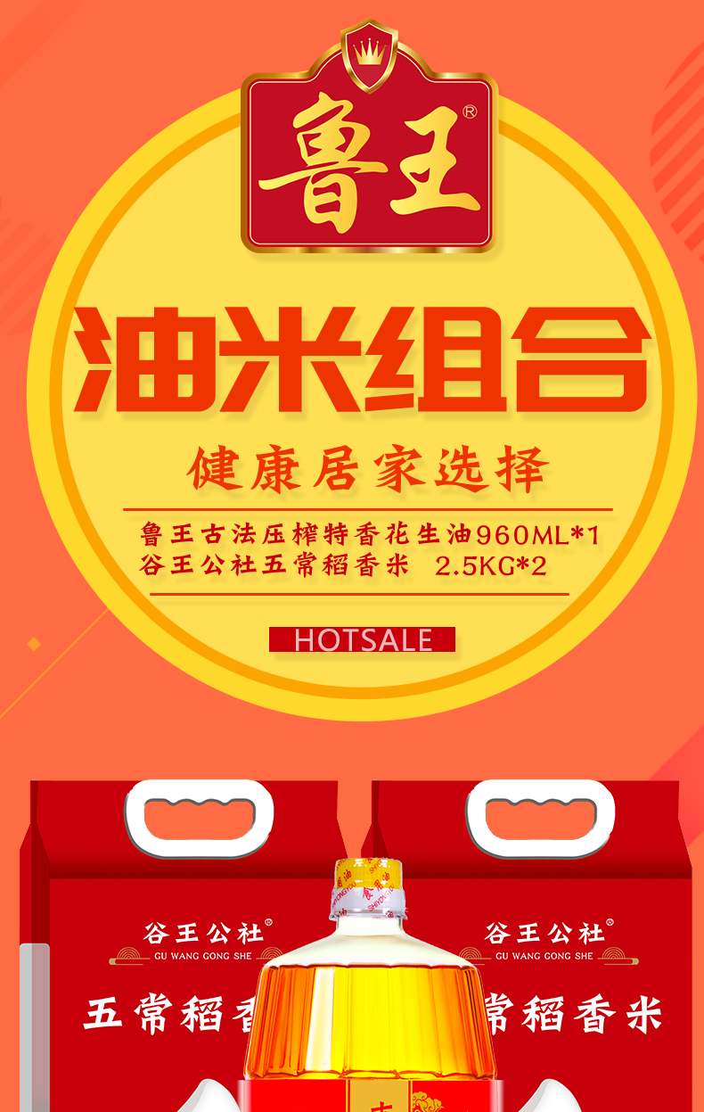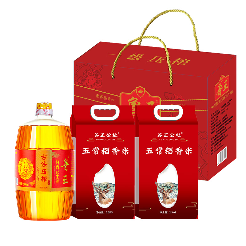 魯王古法特香花生油960ml +谷王公社五常稻香米2.5kg*2